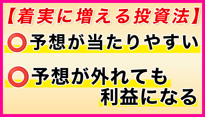 予想が外れても利益になる投資法が特集されていたので試してみることに。本当に型に当てはめて、ルールに従うだけで簡単に利益が積み上がっていき、株投資を続けて良かったと初めて思えました!